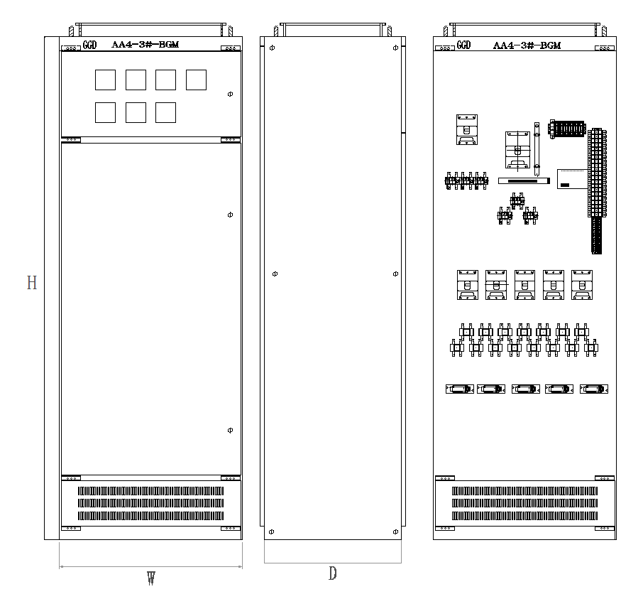 GGD系列低壓配電柜是根據(jù)能源部主管上級,廣大電力用戶及設計部門的要求,本著安全、經(jīng)濟、合理、可靠的原則設計的新型低壓配電柜。產品具有分段能力高,動熱穩(wěn)定性好、電氣方案靈活,組合方便、系列型、實用性強、結構新穎、防護等級高等特點??勺鳛榈蛪撼商组_關設備的更新?lián)Q代產品使用。產品廣泛適用于發(fā)電廠、變電站、廠礦企業(yè)等電力用戶的交流50Hz,額定工作電壓380V,額定工作電流至3150A的配電系統(tǒng),作為動力,照明及配電設備的電能轉換、分配與控制之用。