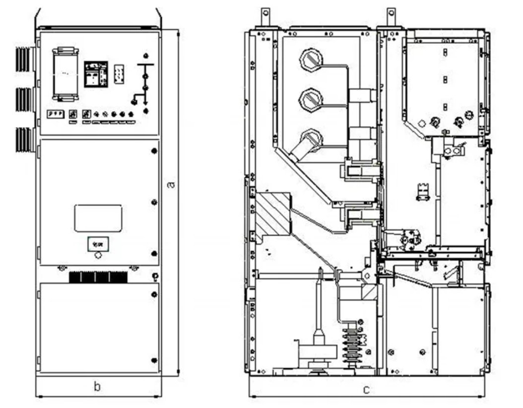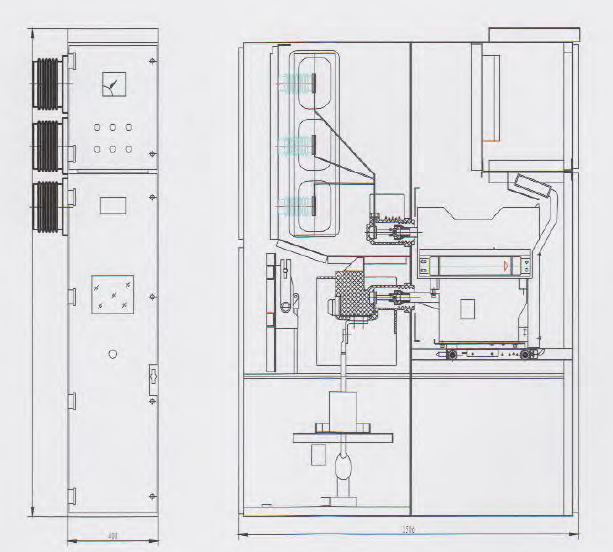 外殼為IP4X(最高可到IP43),隔離間,斷路器室門打開時為IP2X |